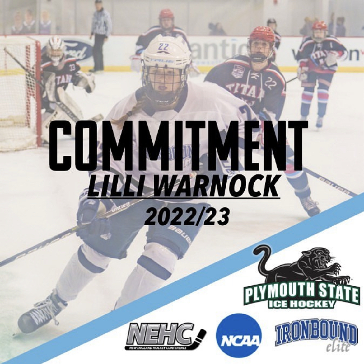 Senior forward Lilli Warnock has committed to Plymouth State University for the 2023 incoming class. Lilli has been a true testament to perseverance and dedication in her journey to college hockey. We are excited for her future and can’t wait to see her play at Plymouth next season!